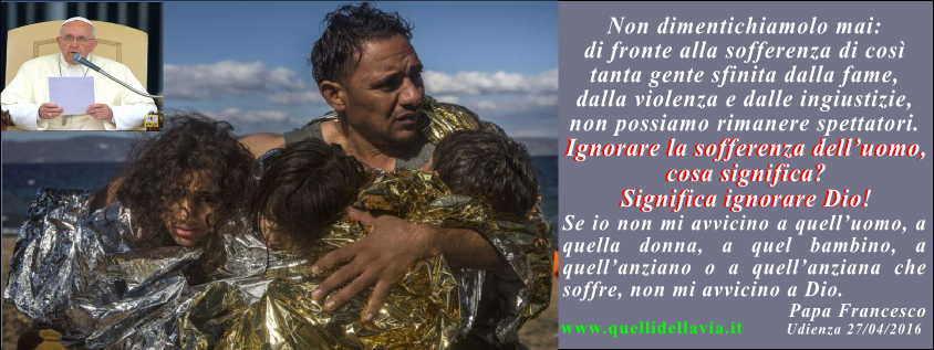 video video Francesco, Ieronymos e Bartolomeo si sono quindi avviati verso il minibus per tornare in aeroporto, “scortati” da due ali di folla, tra cui molti genitori con bambini piccoli in braccio, dalla quale si è levato diverse volte il grido in italiano: “Papa Francesco!” videoGuarda la bella sintesi del viaggio nel film di TV2000 video“Il Papa ha voluto fare un gesto di accoglienza nei confronti dei rifugiati accompagnando a Roma con il suo stesso aereo tre famiglie di rifugiati dalla Siria, 12 persone in tutto, di cui 6 minori. Si tratta di persone che erano già presenti nei campi di accoglienza di Lesvos prima dell’accordo fra Unione Europea e Turchia”. Lo ha dichiarato padre Federico Lombardi, direttore della Sala Stampa della Santa Sede, poco prima della partenza dell’aereo papale dall’aeroporto di Mytilene alla volta di Roma. “L’iniziativa del Papa – ha spiegato Lombardi – è stata realizzata tramite una trattativa della Segreteria di Stato con le autorità competenti greche e italiane. Tutti i membri delle tre famiglie sono musulmani. Due famiglie vengono da Damasco, una da Deir Azzor (nella zona occupata dal Daesh). Le loro case sono state bombardate. L’accoglienza e il mantenimento delle tre famiglie saranno a carico del Vaticano. L’ospitalità iniziale sarà garantita dalla Comunità di Sant’Egidio”. Vedi i nostri post precedenti: