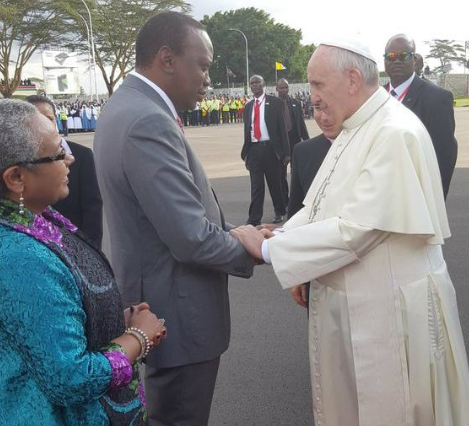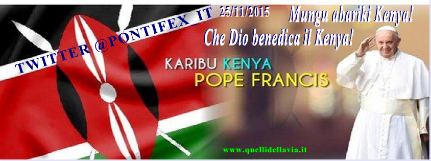 Prima dell'arrivo in Kenya, il Papa ha twittato per salutare tutta la popolazione keniota: Mungu abariki Kenya! Che Dio benedica il Kenya!