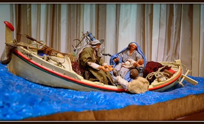 nell'atto di accogliere sull'imbarcazione un migrante in mare... Un presepe su un barcone il dono di Papa Francesco a LampedusaVedi anche il nostro post precedente: