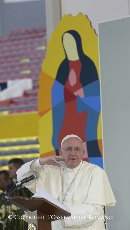 Tre parole che adesso ripetiamo: ricchezza, perché ci è stata data; speranza, perché vogliamo aprirci alla speranza; dignità. Ripetiamo: ricchezza, speranza e dignità [ripetono]. La