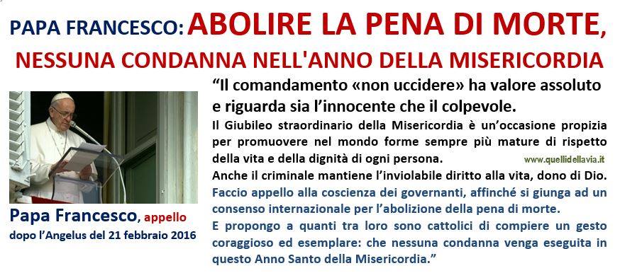 Non abbiamo niente in comune... (vignetta) Dobbiamo sempre portare quella carezza di Dio... Con Pietro, Giacomo e Giovanni saliamo... Abolire la pena di morte... A Pietro, nel primo conclave della storia... Come Pietro, modello del credente, anch'io... Siamo chiamati ad essere i collaboratori... Se la fede ci fa essere credenti... Non è un'eresia pratica... Chi vuol essere grande... Se si perde la dimensione del servizio... Aspiriamo tutti ardentemente al cielo... Chiediamo al Signore di vedere sempre i Lazzari... Una cosa Gesù mi chiede... Sì, è vero, io stesso sono vittima di sogni svaniti... Un gesto... un sorriso... Non perdete il fascino di sognare...Sono